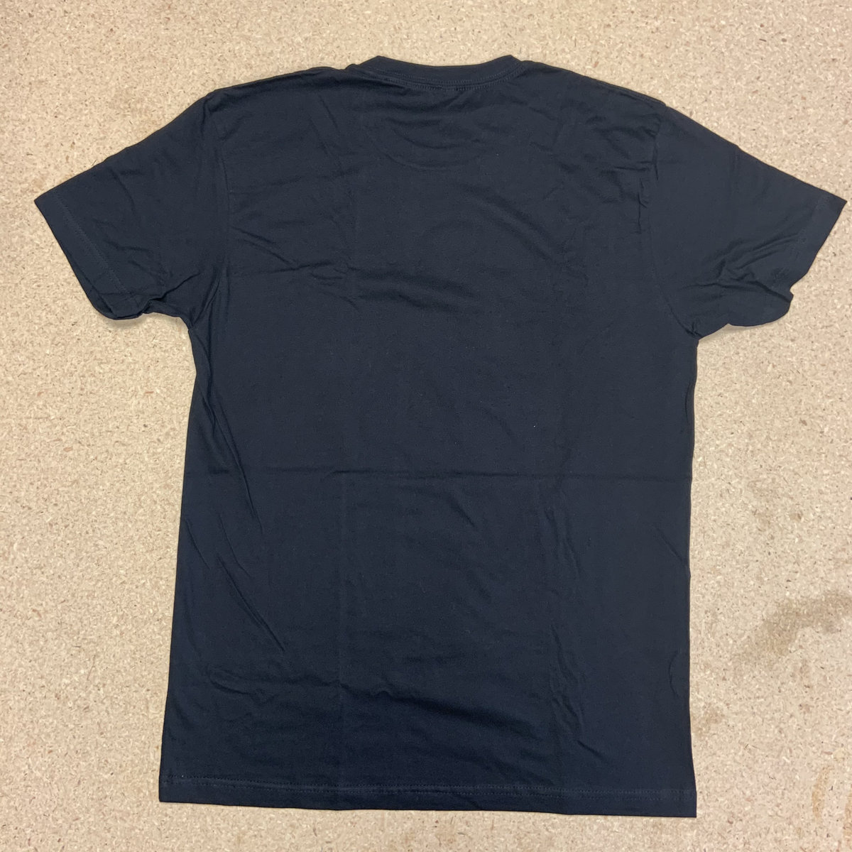 Basic black tee with bright green text and imagining centered on the front. Image is an iconic band photo. Plain back. Shirt brand is Next Level Apparel. Only unisex sizes available.